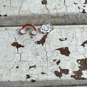 Brand new ADORABLE asymmetric tiny stud earrings: rainbow and cloud