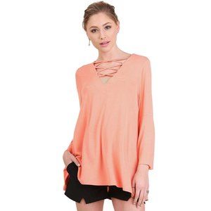 Umgee Crossed Neck Bell Sleeve Tunic, Coral