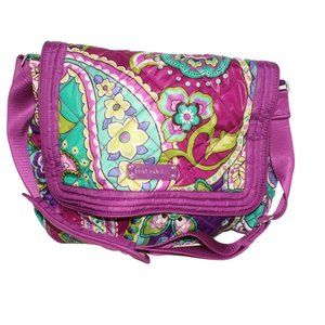 Vera Bradley Purple Heather Berry Pattern Travel Messenger Diaper Crossbody Tote Purse Bag