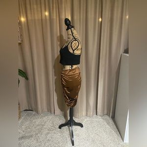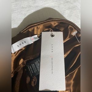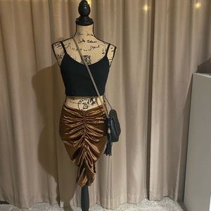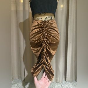 New LUSH ruched pencil skirt in color burnt amber (bronze). The inside lining has a mesh like body shaper. I have 2 skirts left in S and M.