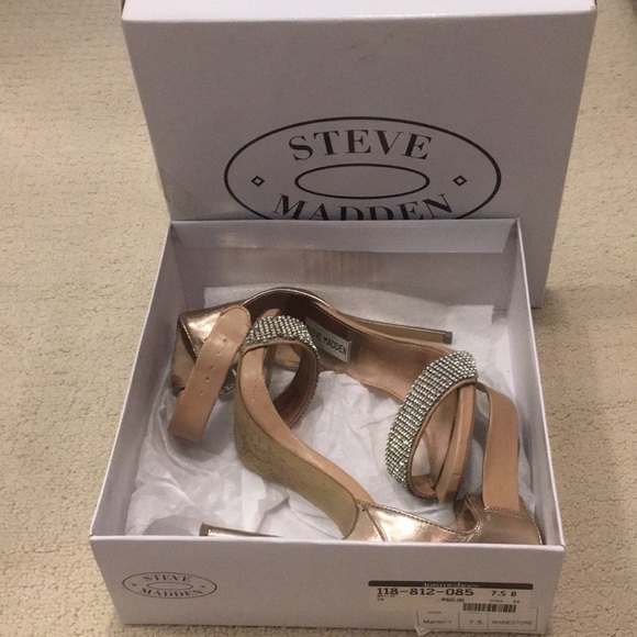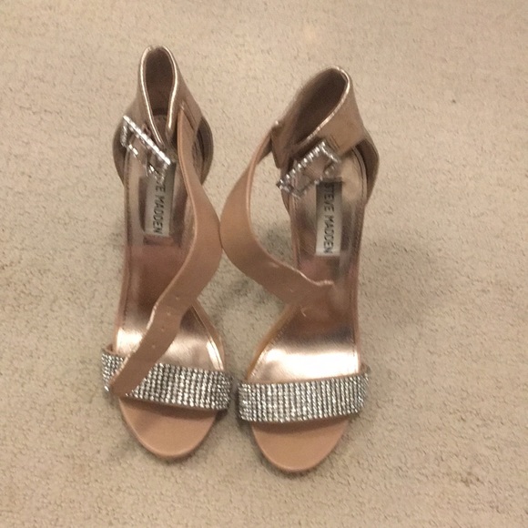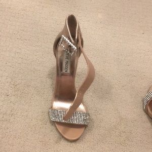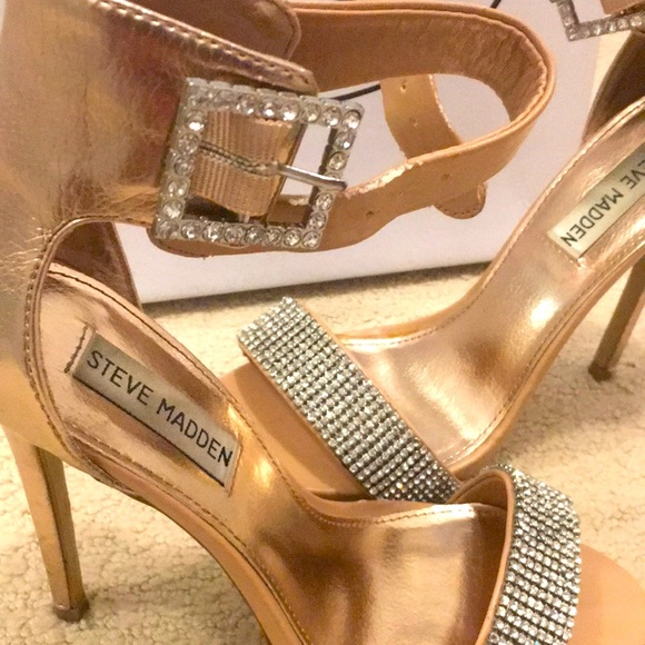 Steve Madden Marlen-R Rhinestone Ankle Strap Heels* *Size 7.5M, Nude/Gold, Stiletto Heel* Elevate your style with these stunning Steve Madden Marlen-R Rhinestone Ankle Strap Heels! Featuring a nude and gold color scheme, rhinestone details, and a stiletto heel, these shoes are perfect for dressing up or adding a touch of glamour to your everyday look. *Condition:* Excellent condition, comes in original box *Size:* 7.5M *Height:* Approximately 4-1/2” stiletto heel *Don't miss out on this amazing deal!* ** Bundle and save:** Purchase 3 or more items and get 15% off! *New to Poshmark?* Use my invite code vipsales2022 at account sign up for $15.00 OFF your first purchase! #SteveMadden #RhinestoneHeels #AnkleStrap #Stiletto #NudeAndGold #ShoeLover #FashionDeals #PoshmarkSteals
