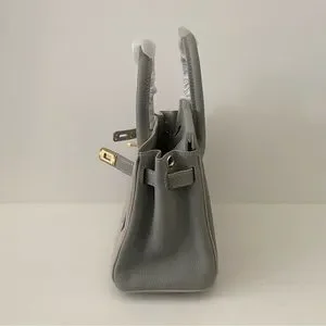Gray Colorblock Structured 25 BK Leather Bag Lock & Key Satchel Crossbody S2