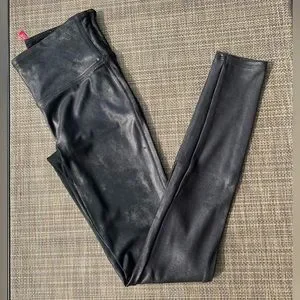 Faux Leather that flatters. This best-selling style features sleek, smoothing faux leather fabric that shapes and lifts and our contoured Power Waistband for core compression.