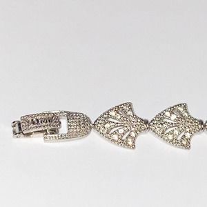 Vintage Christian Dior Silver Filigree Link Bracelet with Rhinestones. Dior Logo on the Clasp. Signed.