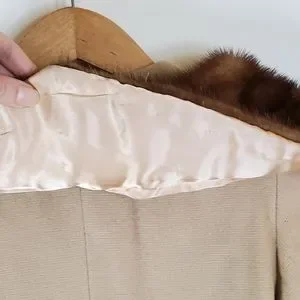 Vintage 60s Midcentury Classic Cream Feminine Button Coat with Brown Fur Collar