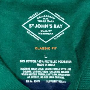 For sale is this New with Tags St Johns Bay Men's Large Long Sleeve Green Striped Button Up Shirt. Shirt is brand new with tags included!