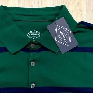 St Johns Bay Mens Large Legacy Polo Long Sleeve Green Stripe Classic Fit Stretch