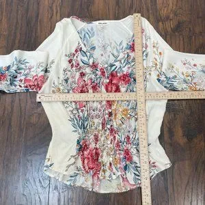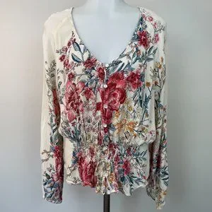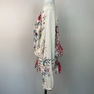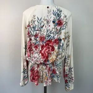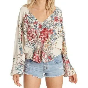Billabong Top Small Play Day Blouse Floral Pink Ivory Long Sleeve Women's