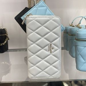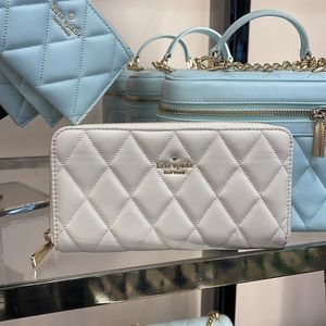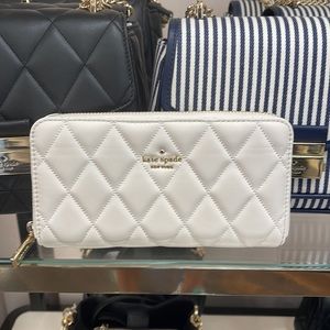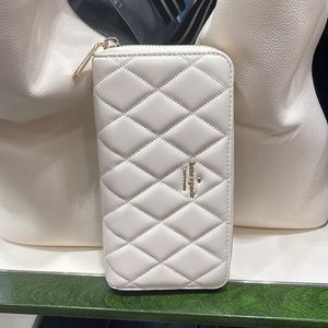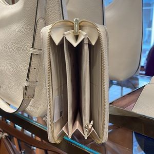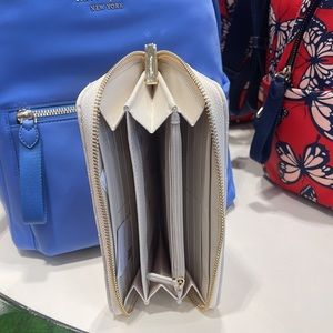 interior: 12 credit card slots, 2 slip pockets, zip coin compartment, 3 gusset compartments
