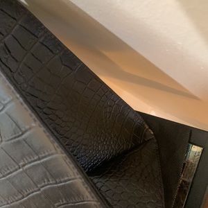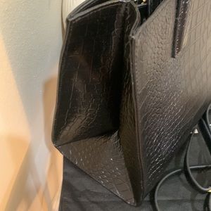 Luxurious croc embossing textures the exterior of this spacious tote bag finished with protective bottom feet.