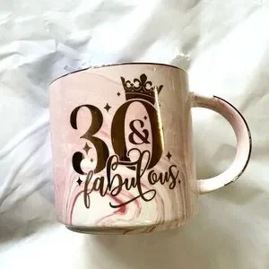 All brand new items. Comes with sash in gold glitter color and pin. Gold headband with gift box. Two shot glasses and a pink marble design mug.