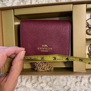 NWT NIB Coach Mini Black Cherry Color Wallet w/ Gold Chain & Attachable Charms