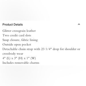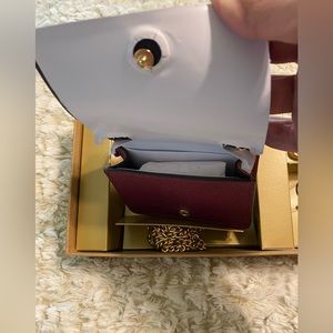 This NIB/NWT Coach gift set boasts a mini black Cherry colored wallet with a detachable gold chain and detachable charms. Such a great gift! The wallet can house change, IDs, money, cards. 4”x3”