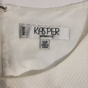 New Without Tag! Never Worn. Kasper White Sleeveless Sheath Dress Size 10P. Back Zipper Closure. See More Photos For Measurements, Fabric Contents, and Care For Instructions. Smoke Free Home.