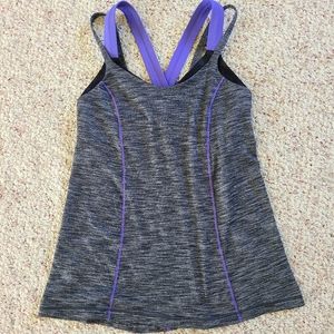 Lululemon Run For Gold Tank Size 4 (sm) in Heathered Blk/ Iris Flower