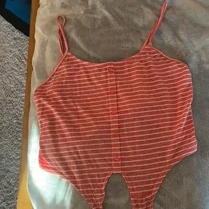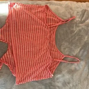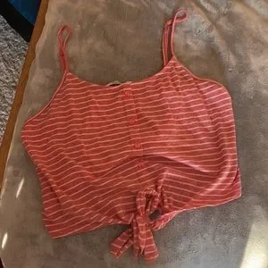 PAPAYA stripped tiny-top spaghetti straps. Tie in the front with buttons down the front.