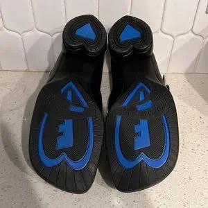 Excellent condition, only tried on once. Leather. Black with white detailing. Heart design.