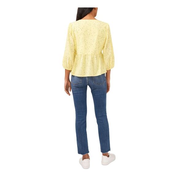 RILEY&RAE Womens Yellow Ruffled Bow Detail Floral 3/4 Sleeve V Neck Top M