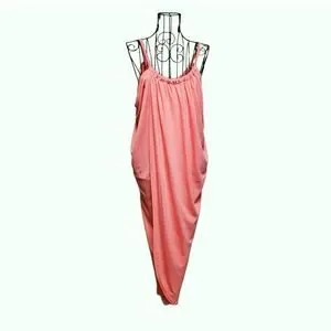 Comfortable and cute summer peachy pink wrap dress with adjustable straps or wear it as a swim suit cover-up.