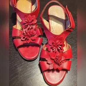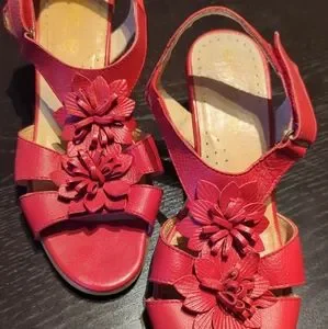 Once worn DAMART Comfort Cushioned Leather Sandals Red UK4 EU 37