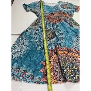 Women Dress Sz L Large Short Sleeve Pleated Pockets Casual Stretch.