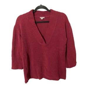 J. JILL Women's Sweater XS Soft Over Sized Burgundy Pull Over 3/4 Sleeve EUC