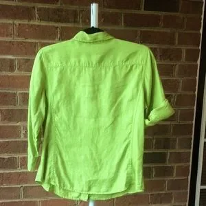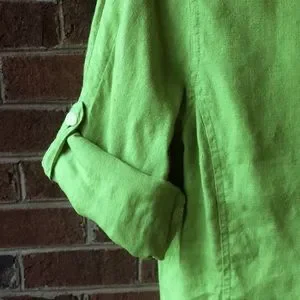Talbots Linen 3/4 sleeve, sleeve buttons up, pocket on left chest.