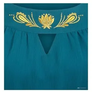Embroidered lotus and paisley detailing on collar