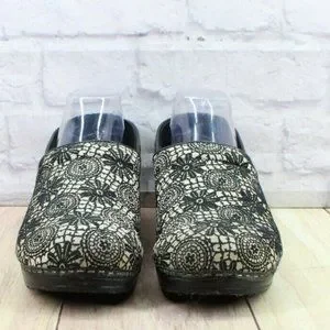 Sanita Multicolor Faux Leather Floral Pattern Slip on Clogs Size 10.5-11
