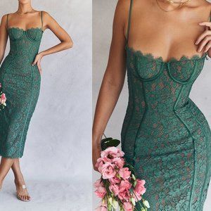 House of CB 'Joelle' Forest Lace Midi Dress NWOT