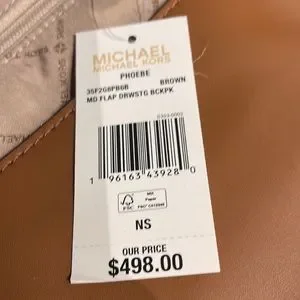 Michael Kors Backpack Bag Phoebe Medium Flap Drawstring Backpack Brown NWT