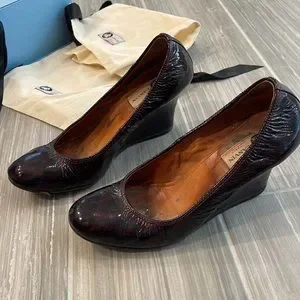 Lanvin burgundy patent wedge ballet shoes, size 38 (8 us)