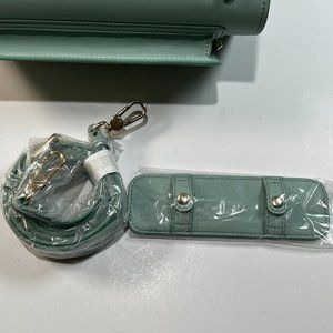 Saia London The Emmeline Yoga Mat Bag Teal New Vegan Faux Leather Shoulder Strap