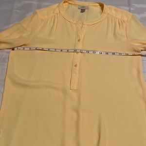 Loft -size M Butter yellow chiffon type semi sheer popover top. Pleats at shoulder, 3 button, v neck. Long sleeve. Beautiful butter yellow color. Preowned in great condition. Comes from smoke free home.
