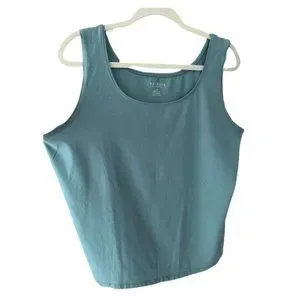 Like new Talbots 2x dusty blue tank top. The color has hints of grey and green, very beautiful dark aqua, best photo of it is the primary one. This is a stretchy, casual cotton. Perfect for layering or wearing in summer. Measures 23" P2P, 26" from shoulder to hem.