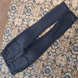 Very good used condition, size 0/25 darker wash jeans with distressing and holey detail. These have a bit of stretch. Length is about 35.5 inches, rise from crotch is about 11 inches and inseam is about 26 inches. Very cool!