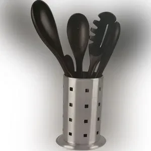 New in box. Servappetit brand 5 Piece Kitchen Utensil Set made of Acacia Wood. Includes stainless steel holder/organizer/stand.