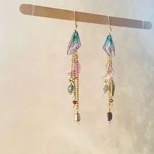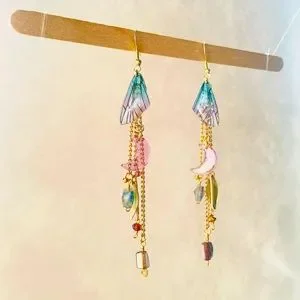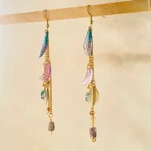 Multilayered dangle earrings with butterfly wing charms. Handmade and never worn