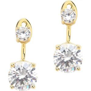earrings 14k yellow gold Zirconia Crystal 1” Drop Post back