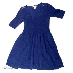 Condition: Preowned Featuring: Neck tunic, navy scoop. Short sleeve. Sweater knit- stretchy. Button details on shoulders.
