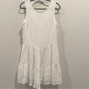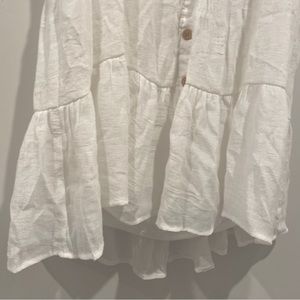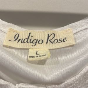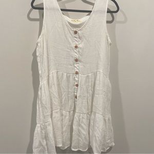 This is a white boho Indigo Rose dress in a size large. It has ruffle tiers and is perfect for summer, spring or going to the beach.