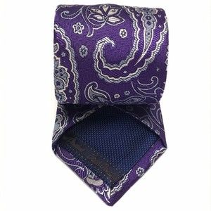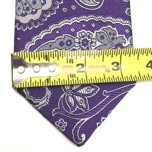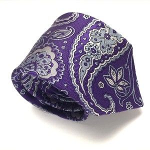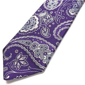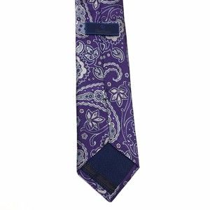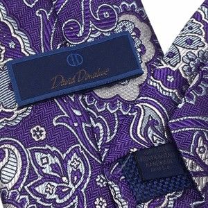 David Donahue Tie Men Silk Purple Light Blue Silver Paisley Necktie Woven Italy