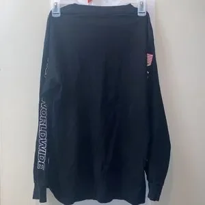 HUF long sleeve, 100% cotton, has flag on the right sleeve. The left sleeve has HUF worldwide