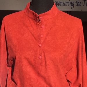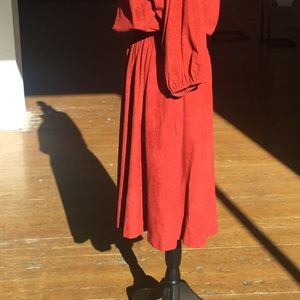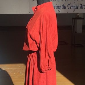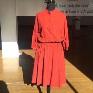 Vintage Rust colored 3/4" sleeve elastic waist button front midi dress