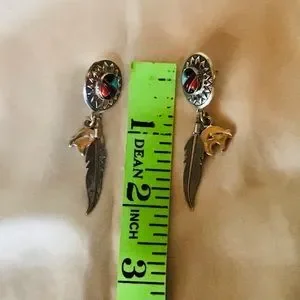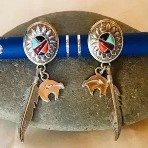 These are stamped sterling and feature multi color gem stones, feather and fetish. EUC, see picture for size. Goes with everything in your wardrobe!