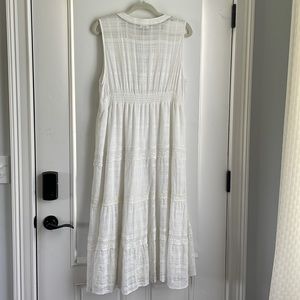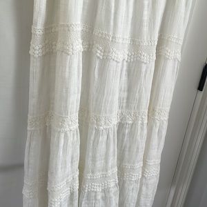Knox Rose dress, XXL with empire waist in an white fabric and bottom is lined. Pit to pit is approx 21”. Shoulder to hem approx 47” lightweight, V neck with boho look.