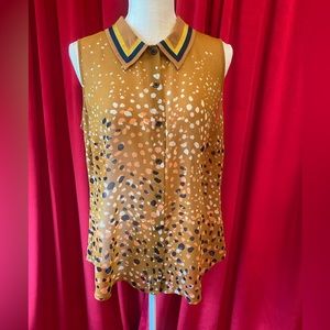 Gorgeous CABI blouse! Would look adorable with navy blue skinny pants or dress down with a pair of jeans! See through button up and cute collar.