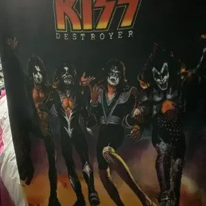 DESTROYER ALBUM COVER DESIGN - This plush towel blanket features a detailed front design of the album cover for KISS Destroyer with the 4 members, The Demon, The Starchild, The Spaceman or Space Ace, The Cat