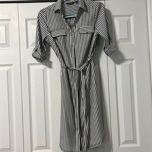This dress is very new and in awesome condition. It has all the buttons and a belt too. Size PS.