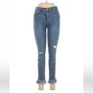Excellent used condition, no defects. Meant rise skinny jeans, distressed. Darker wash color. I love the fringes in the ankles.
